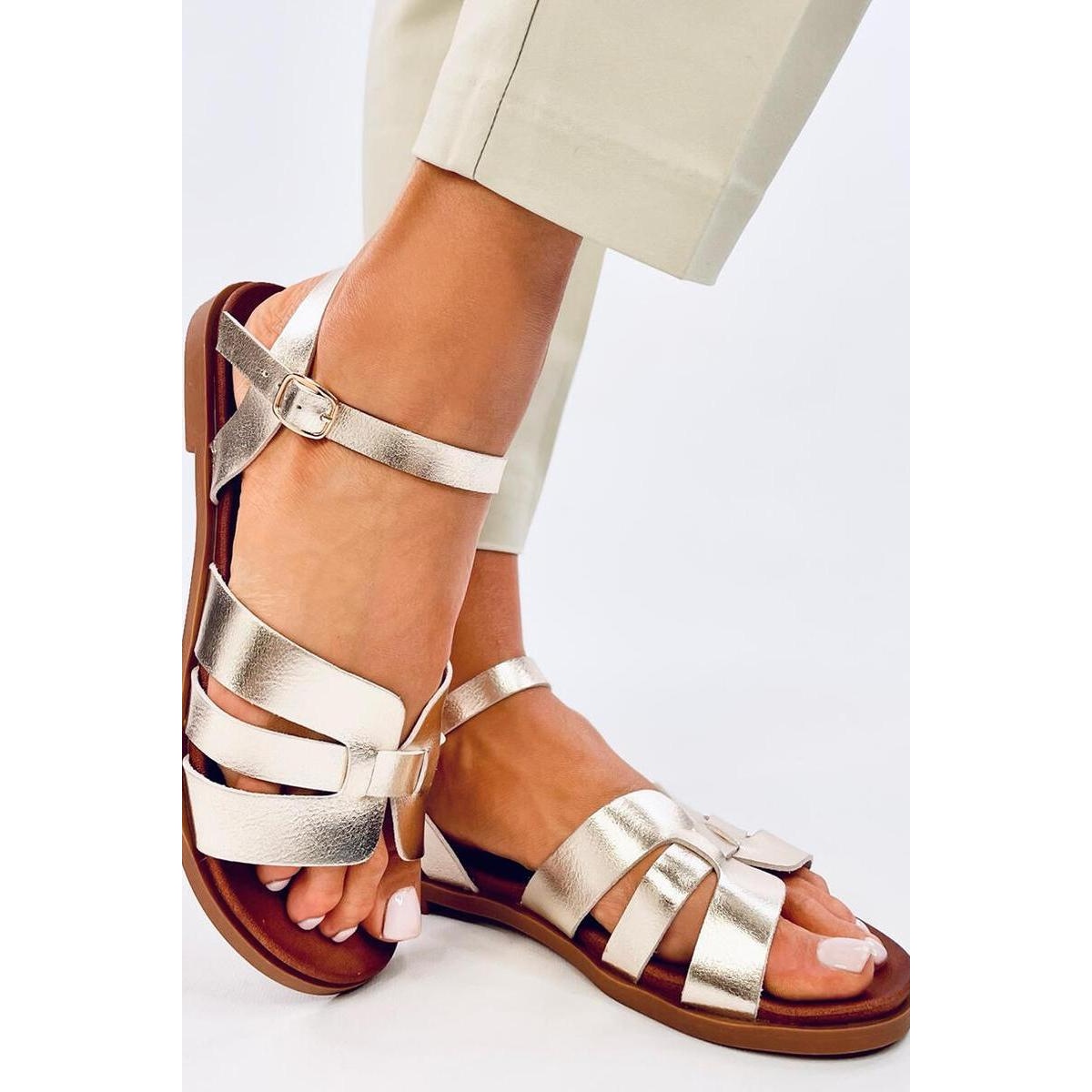 Sandales plates femme dorées