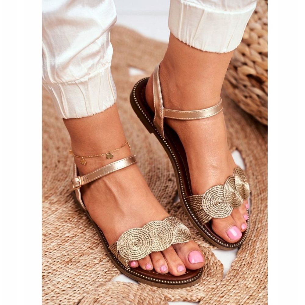 Nous vous présentons les sandales plates pour femme S.Barski en or de la collection Humanity. Ce sont des sandales légères et à la mode qui seront un choix parfait pour les journées d'été. Leur élégante couleur dorée attire l'attention et se marie parfaitement avec une variété de tenues, des robes aériennes aux jeans décontractés.