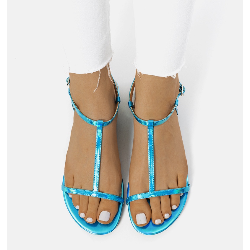 Adelia sont des sandales parfaites aussi bien pour les promenades que pour les événements estivaux. Quelle que soit l'occasion, ces sandales holographiques mettront en valeur votre individualité et votre style. Réservez-vous un peu de luxe pour l'été avec les sandales holo plates bleues Adélia !