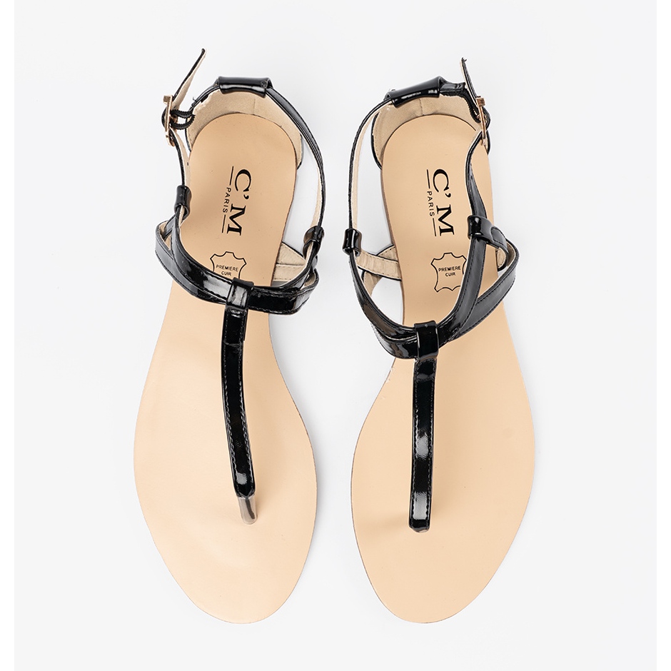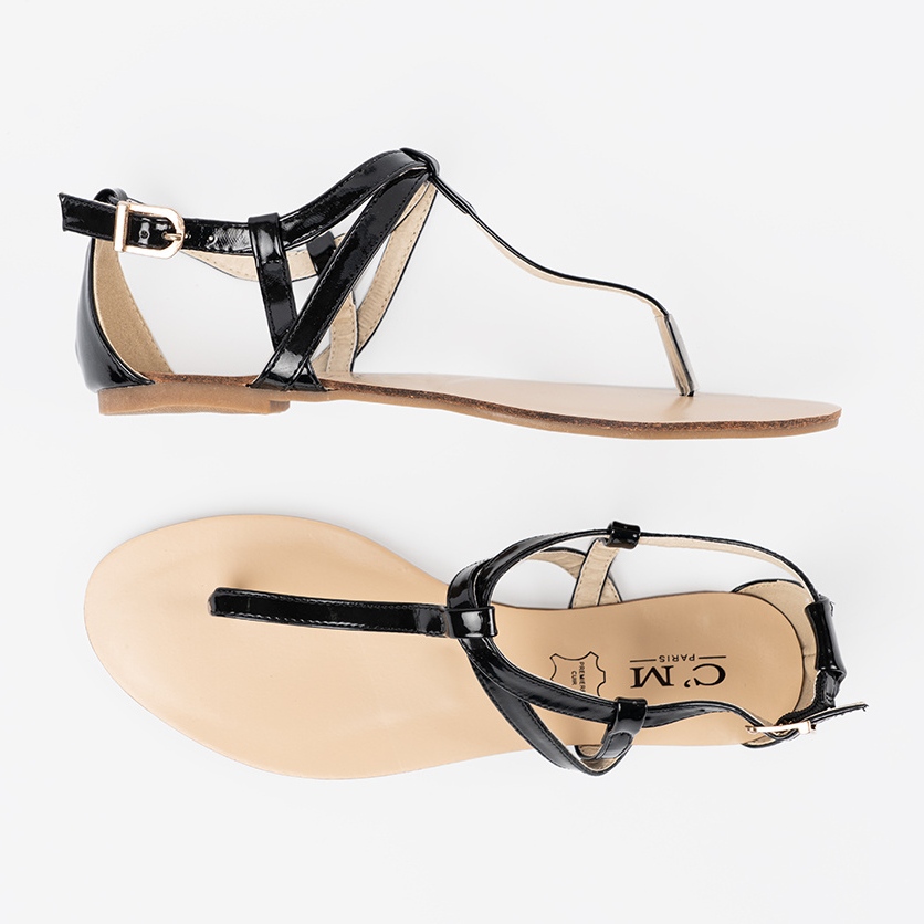 Détails: Sandales plates noires dans le style du japonais le noir