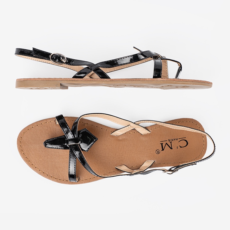 Détails: Sandales plates noires le noir
