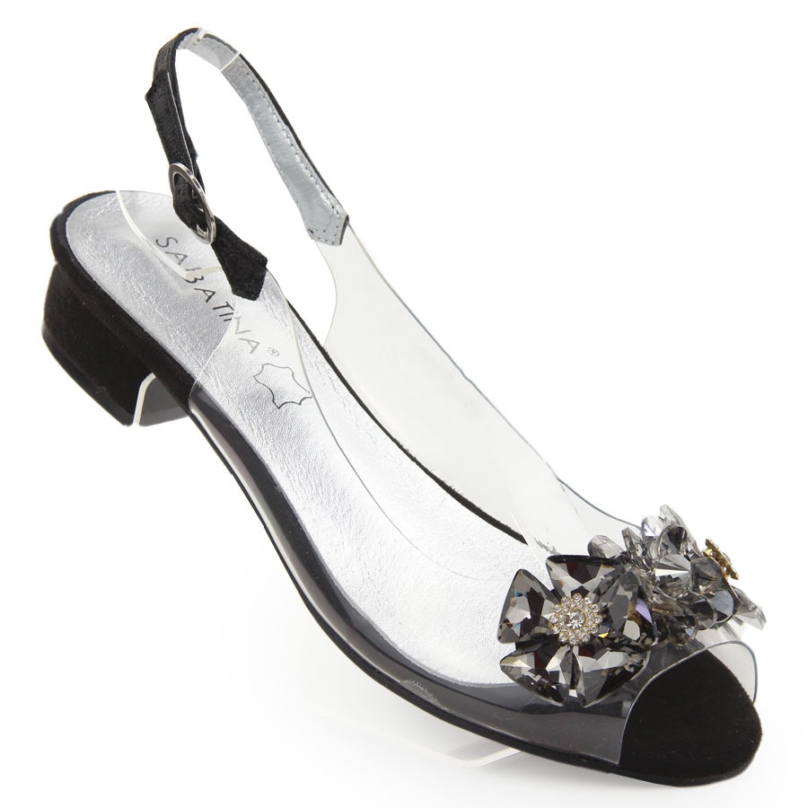 Détails: Sandales plates noires transparentes avec pierres de Sabatina le noir