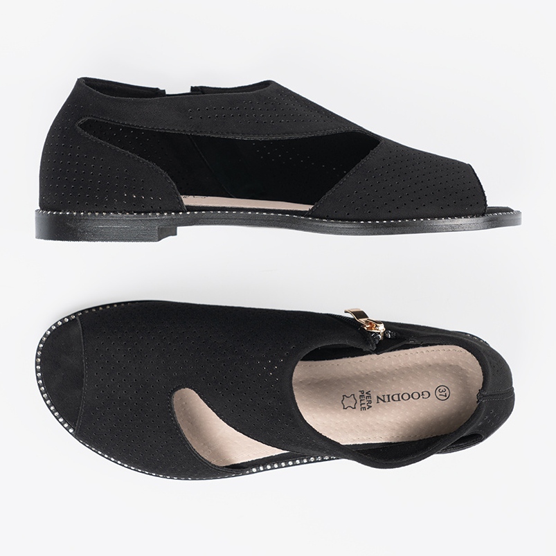 N'hésitez pas - Commandez aujourd'hui Black OpenWork Sandales plates Goodin et profitez d'une apparence à la mode et confortable qui attirera certainement des looks. L'emballage d'origine du fabricant garantira que les chaussures vous atteignent en parfait état. Choisissez une classe dans une édition moderne et concentrez-vous sur des solutions confortables et élégantes!