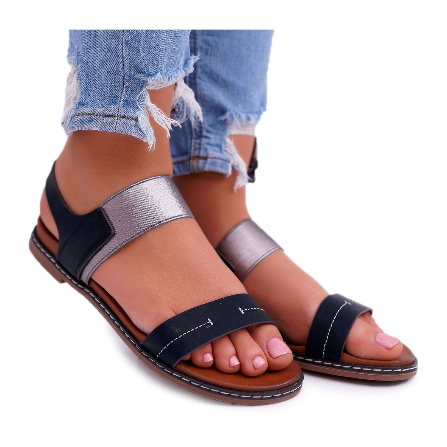 Ces sandales se caractérisent par une coupe classique qui s'adapte parfaitement aux dernières tendances. Fabriqués en cuir écologique, tant sur la partie extérieure que sur l'insert, ils garantissent une haute qualité et un confort de port. Un talon plat d'une hauteur de 2,5 cm garantit un confort qui permet de longues promenades et une utilisation quotidienne sans gêne.