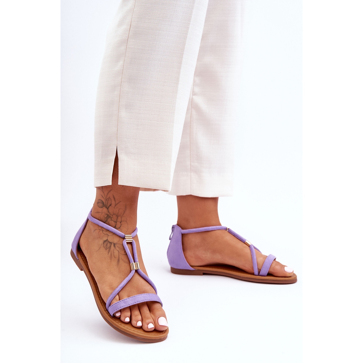 Les sandales plates à glissière pour femmes Violet Jullie sont des sandales à la mode en daim écologique. Elles se ferment par un zip à l'arrière de la tige, ont des bouts ouverts et ronds et un talon de 1 cm de haut. La semelle intérieure en éco-cuir assure un confort d'utilisation et la semelle en caoutchouc a des propriétés antidérapantes.