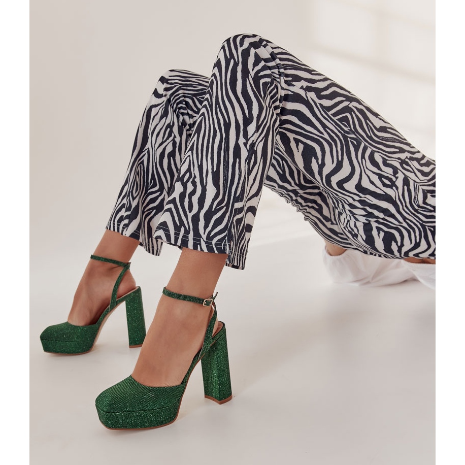 Laissez-vous surprendre par le style et la brillance uniques offerts par les sandales à talons hauts pailletées pour femmes dans une belle teinte verte. Fabriquées dans un matériau de haute qualité recouvert de paillettes scintillantes, ces sandales feront certainement tourner les têtes où qu'elles aillent.