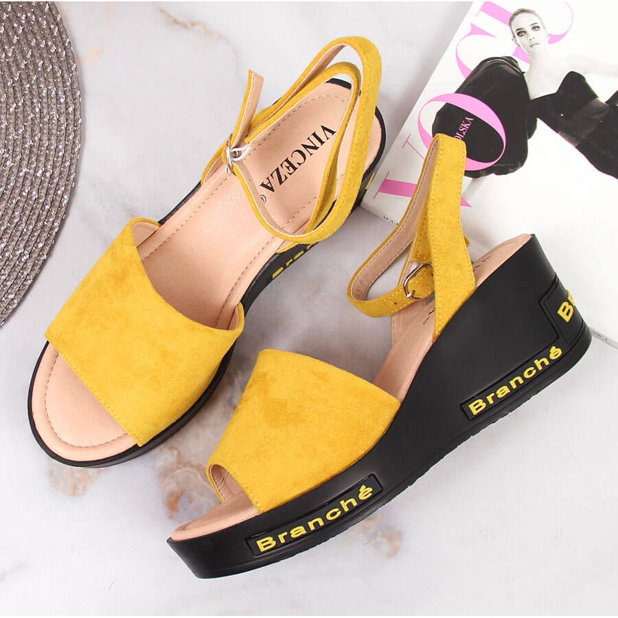 Détails: Sandales pour femme Vinceza jaunes à talon compensé