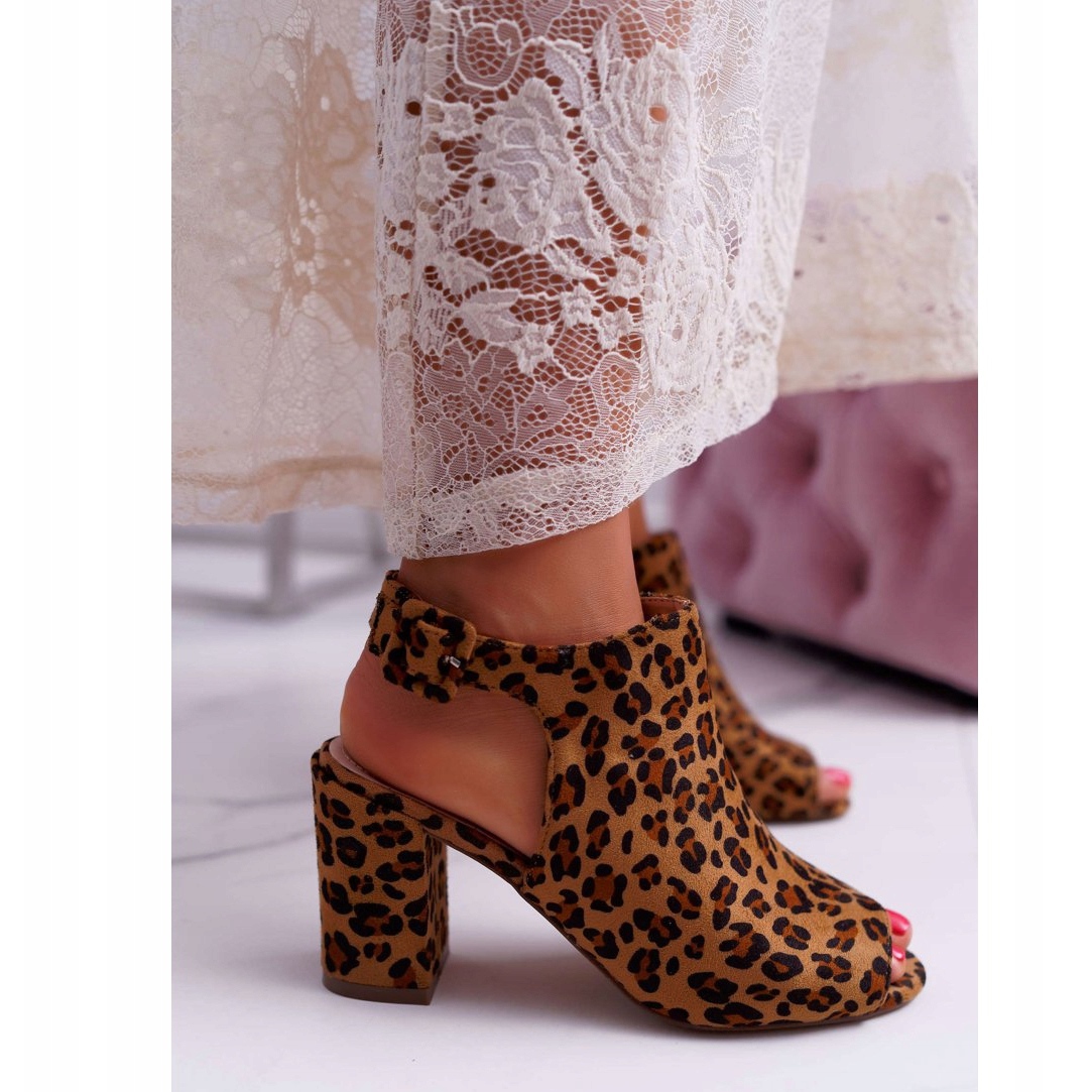 Détails: BUGO Sandales pour femmes à talon haut avec bout ouvert léopard Esta Shank brun