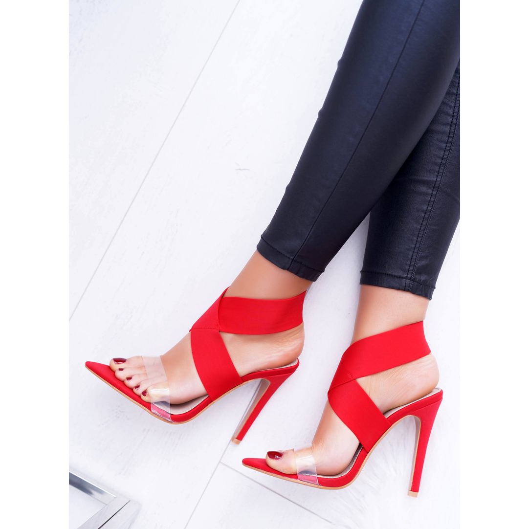 Détails: L.DAY Sandales pour femmes à talon haut avec une large bride Red Lights rouge