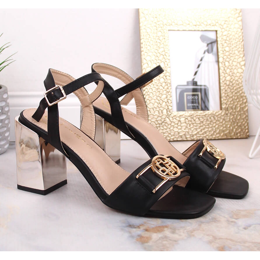 Les sandales sont disponibles dans une couleur noire accrocheuse qui se marie parfaitement avec n'importe quel style, et le talon miroir doré ajoute chic et brillance. La hauteur du talon de 9 cm souligne subtilement la silhouette et assure en même temps un confort de port.