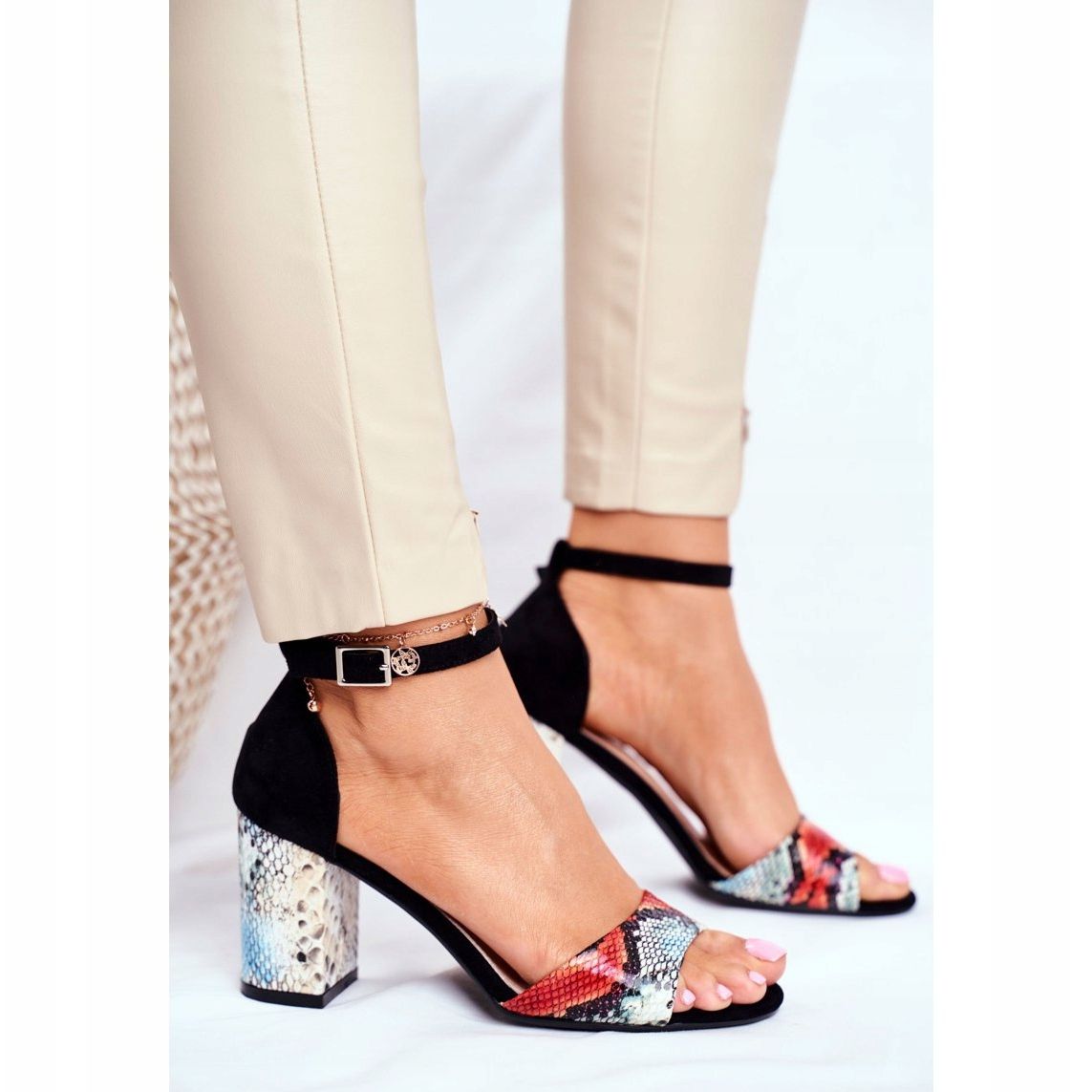 Les sandales sont fabriquées en cuir suédé écologique de haute qualité, ce qui leur confère un aspect luxueux. Ils se caractérisent par de belles décorations de serpents qui attirent l'attention et soulignent leur caractère unique. Une tige stable et basse d'une hauteur de 8 cm assure un excellent équilibre et un confort de port tout au long de la journée, et la semelle intérieure en cuir doux et confortable permet à vos pieds de se sentir bien.