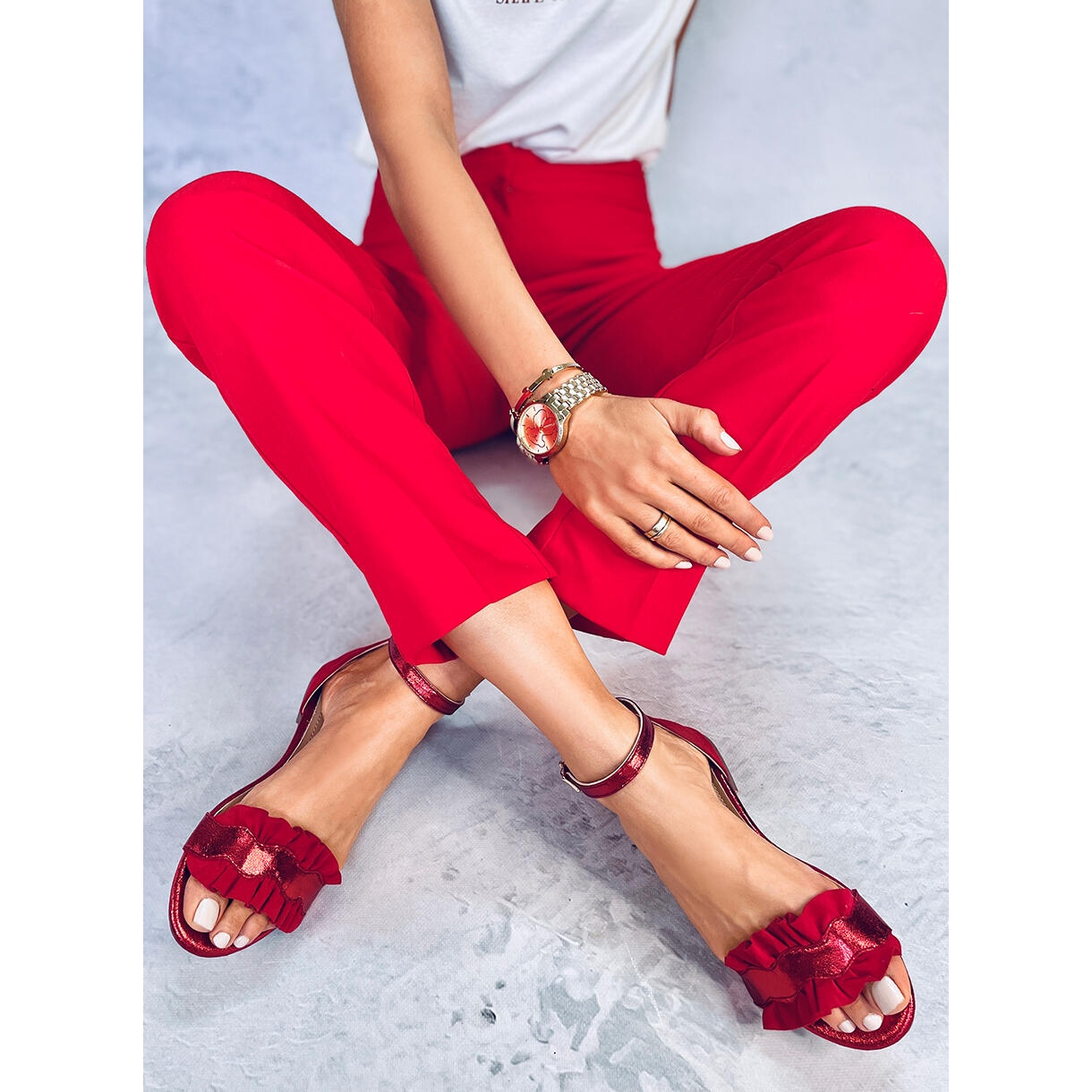 Découvrez la mode estivale avec les sandales femme Alpha Red rouges ! Ces sandales plates élégantes allient élégance et confort, ce qui en fait le choix parfait à porter au quotidien. Leur caractère unique est souligné par la finition métallique et le charmant volant qui leur confèrent un caractère phénoménal.