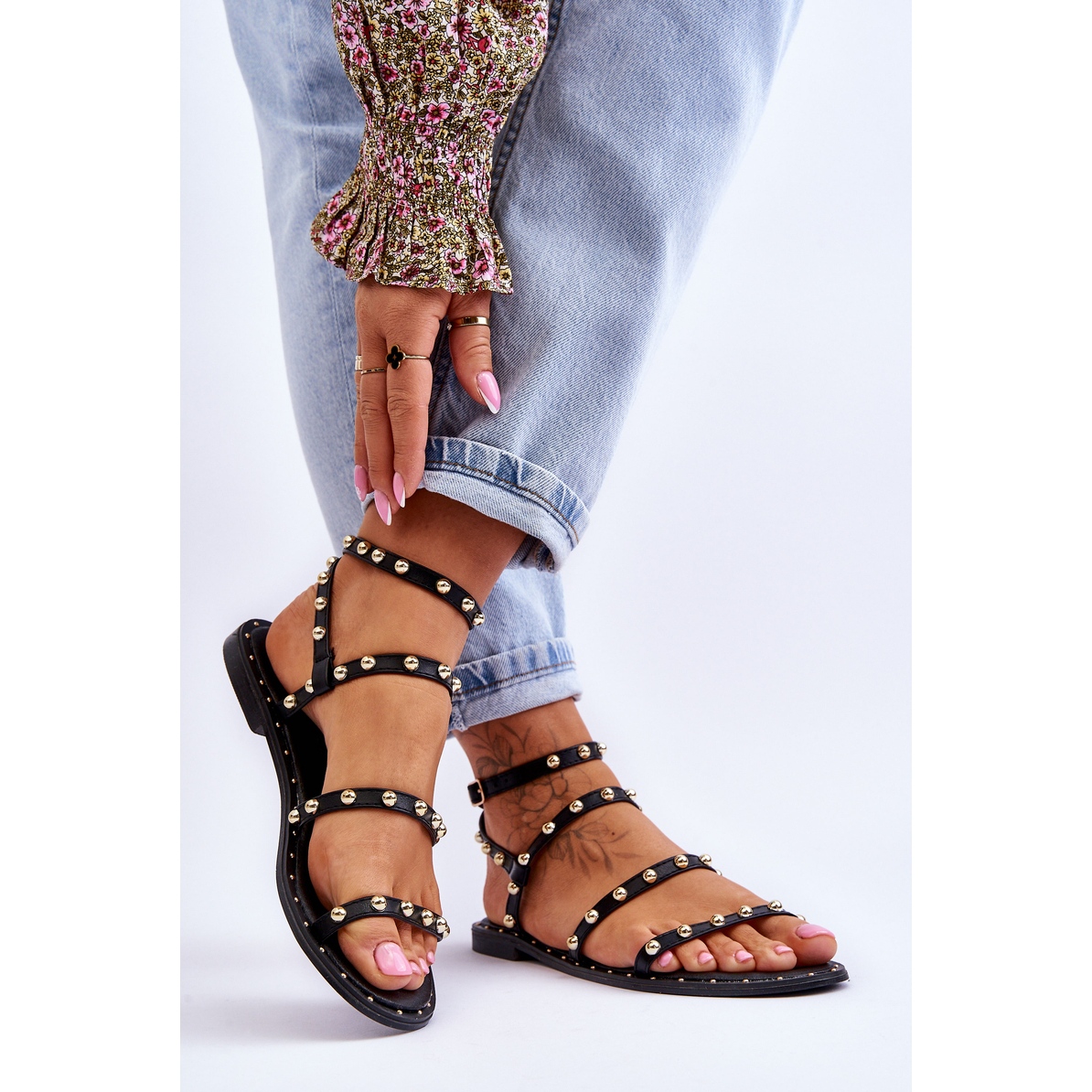 Détails: PG1 Sandales pour femmes avec clous décoratifs Noir Dorothy