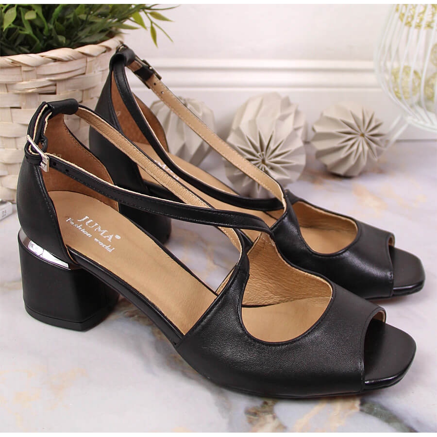Les sandales à talons hauts en cuir noir pour femmes de Juma sont le choix parfait pour les femmes qui recherchent à la fois élégance et confort. Fabriqués en cuir naturel de haute qualité, ils se distinguent par une coupe classique et un coloris noir intemporel qui s'agence à de nombreux styles.