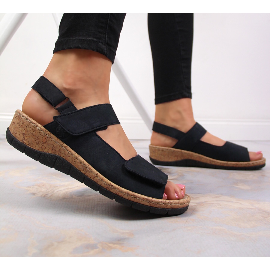Sandales pour femmes en cuir sur le coin Rieker V7170-14 bleu marine