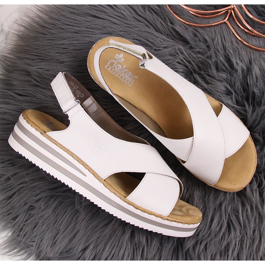 Détails: Sandales pour femmes en cuir sur un coin blanc Rieker V0271 blanche