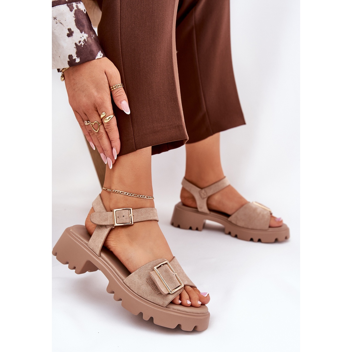 Détails: Sandales pour femmes en daim écologique avec une boucle beige