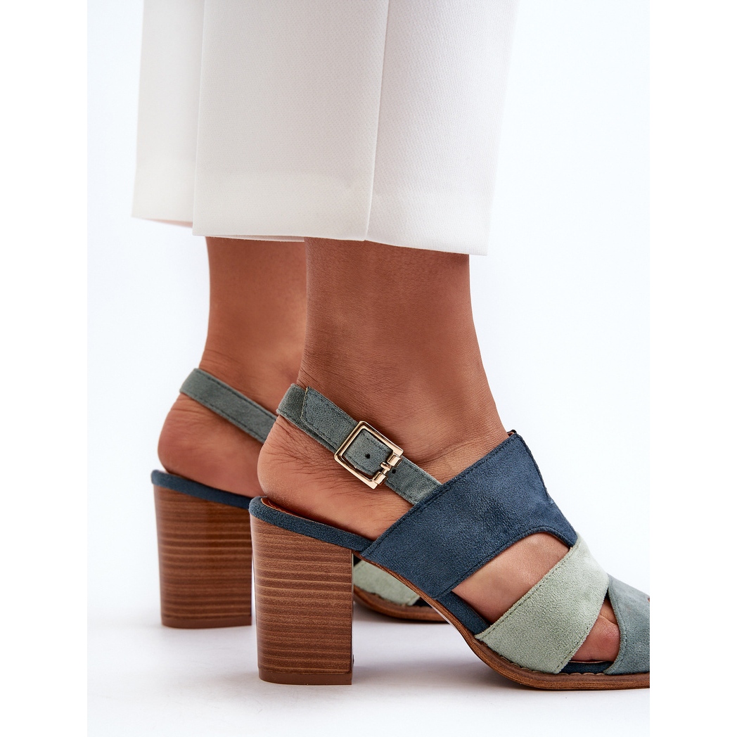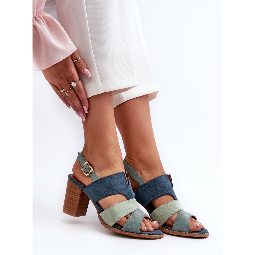 Détails: Sandales pour femmes en suède écologique à talons hauts, bleu Qutima