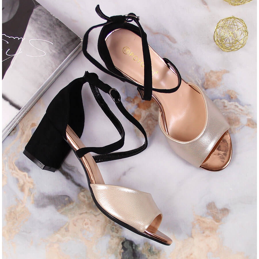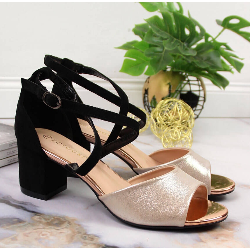 Découvrez l'élégance et le confort avec les sandales à talons hauts pour femmes noires et dorées de la marque Potocki. Ces sandales élégantes sont le complément parfait à tout style féminin, grâce à la combinaison d'un design classique et de couleurs à la mode. Fabriqués en cuir écologique de haute qualité, ils offrent un confort de port exceptionnel, et leur doublure en cuir écologique souple assure des sensations agréables même pendant les longues journées.