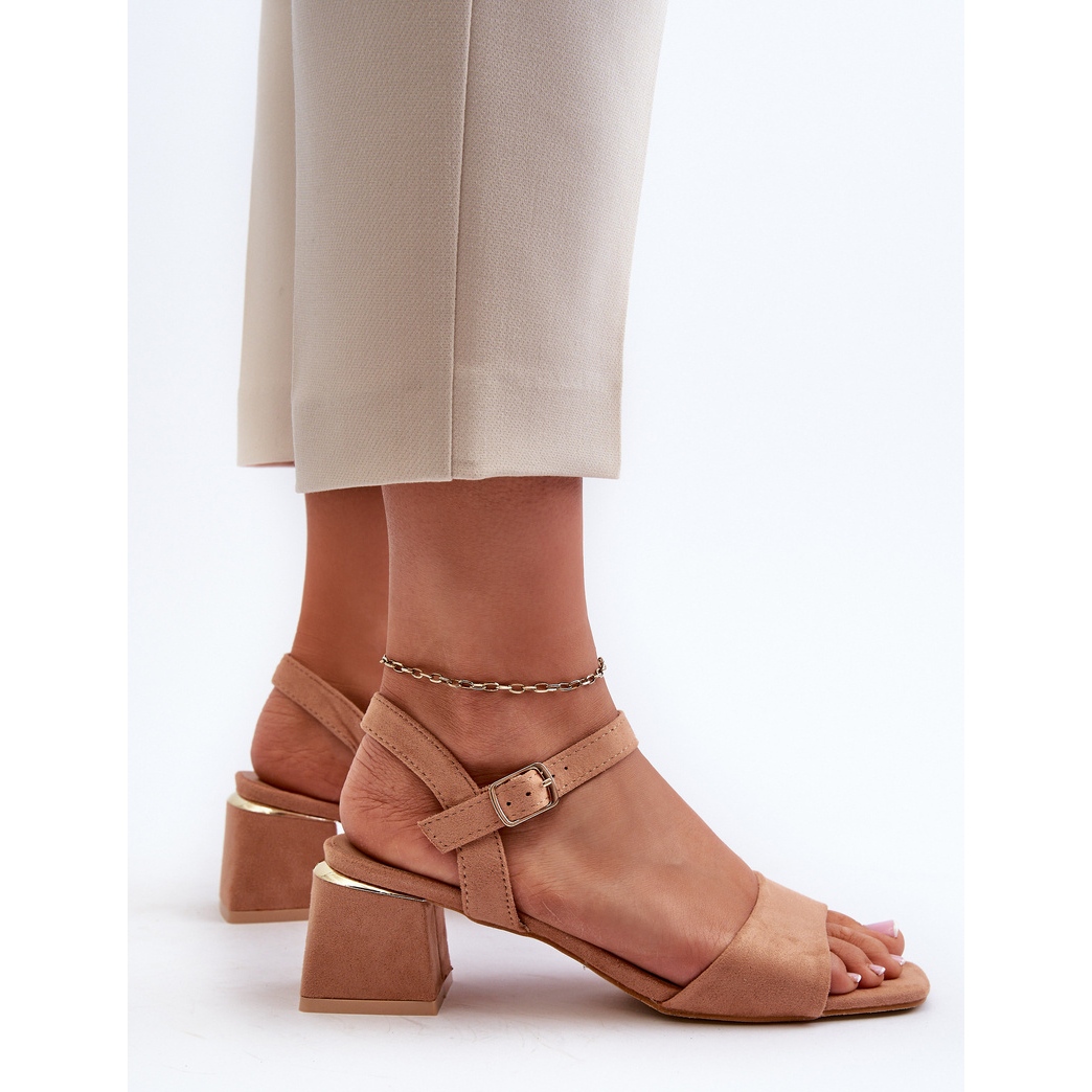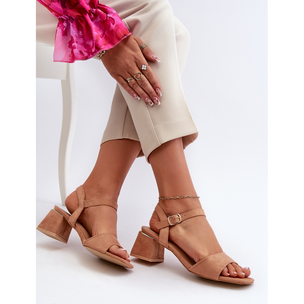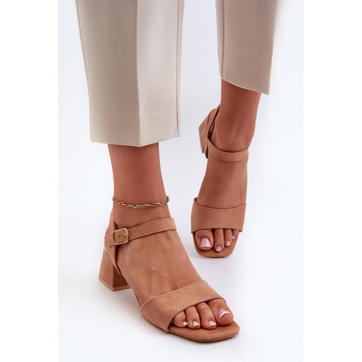Détails: Sandales pour femmes sur bloc en daim écologique Camel Leisha beige