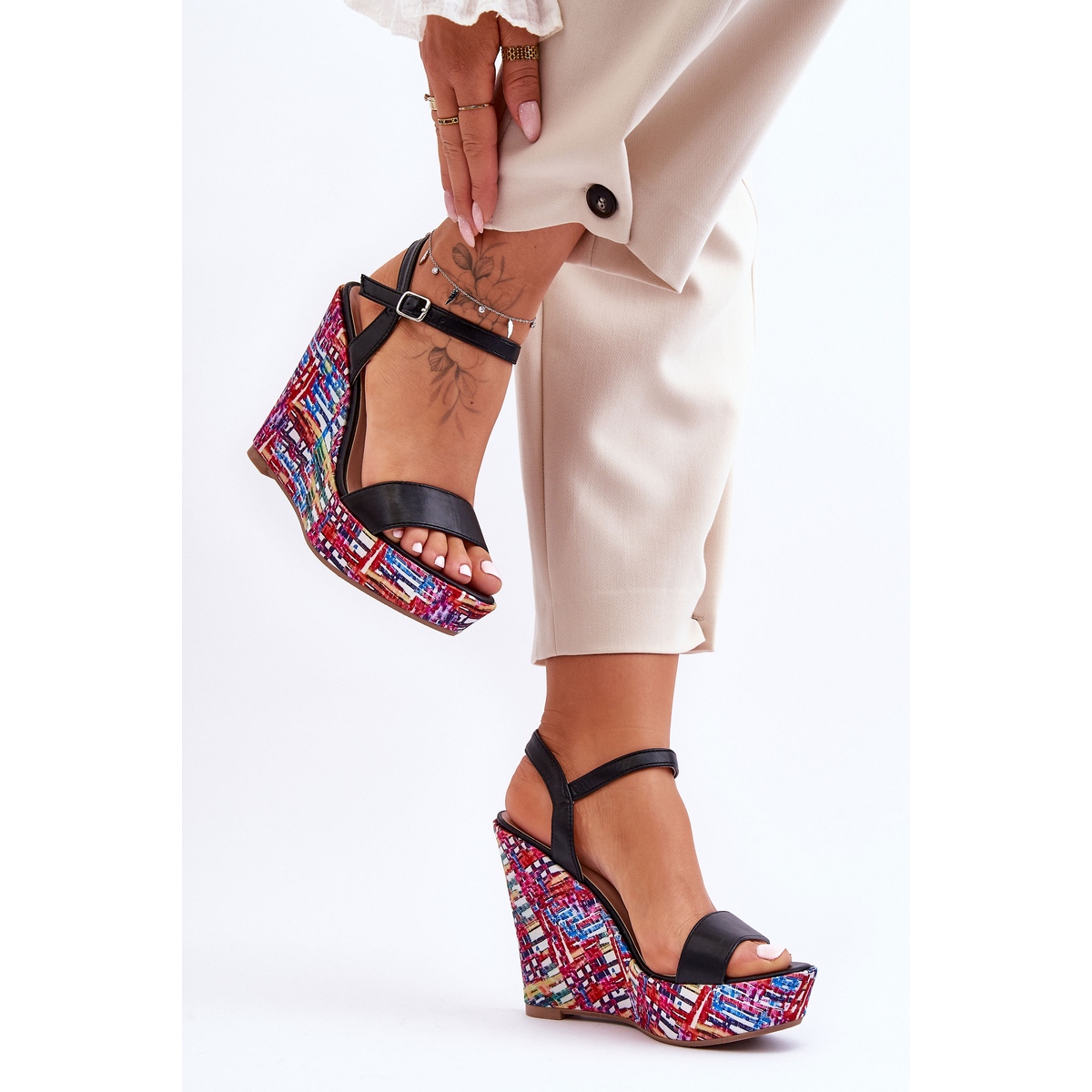 Les sandales ont une cale haute de 12 cm et une plateforme avec une semelle en caoutchouc antidérapante, ce qui augmente considérablement le confort de port, même tout au long de la journée. La semelle intérieure souple en éco-cuir évite la fatigue de vos pieds et vous permet de profiter de chaque pas. Un avantage supplémentaire est le motif original et multicolore, qui se marie parfaitement avec différents styles, en leur ajoutant un peu de fraîcheur et d'expressivité.