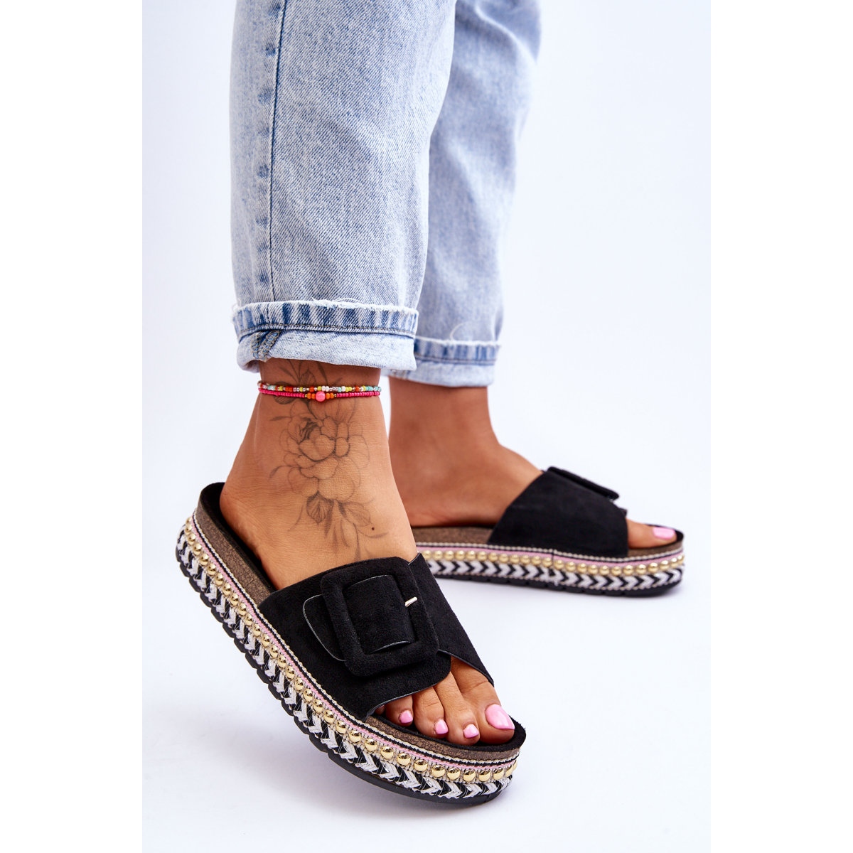 Tongs Joyce noires pour femmes avec une plateforme décorée de PS1 - Le confort rencontre le style