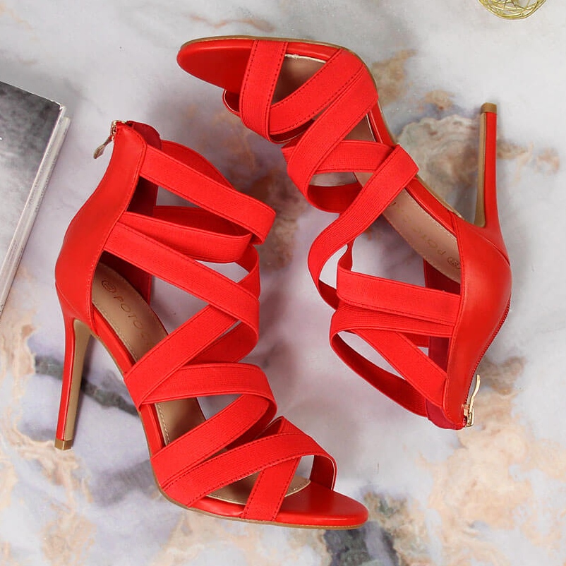 Détails: Sandales pour femmes, talons hauts rouges Potocki