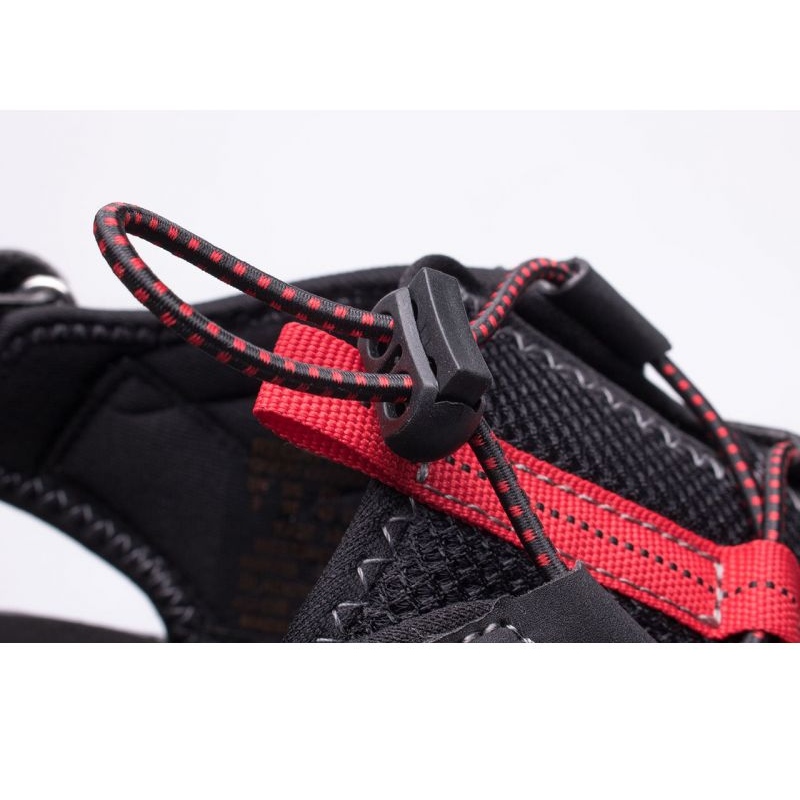 Le système de revers en caoutchouc et de fermeture scratch supplémentaire sur le talon garantit un ajustement précis à chaque pied, ce qui assure un confort même en cas de port prolongé. Les sandales ont été conçues dans un souci de sécurité : une semelle solide et antidérapante fonctionnera aussi bien sur les sentiers de montagne que dans l'agitation de la ville.