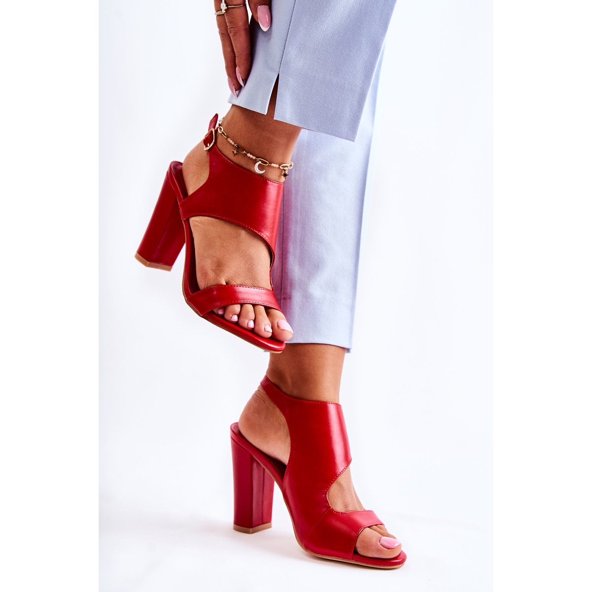 Les sandales découpées rouges Maronni sont le choix parfait pour les femmes qui souhaitent ajouter une touche d'élégance et de modernité à leur look. Ces sandales à la mode sur un talon stable de 10,5 cm de haut séduisent par leur design accrocheur et leur finition soignée en éco-cuir, ce qui les rend à la fois élégantes et écologiques.