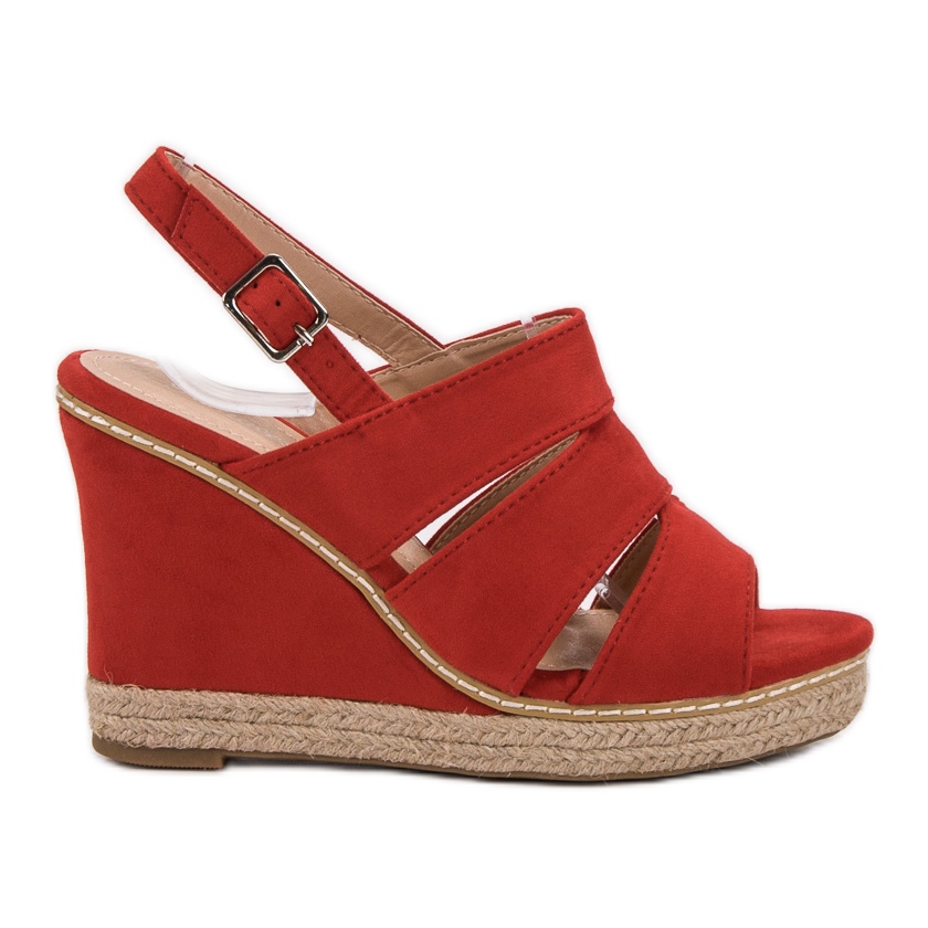 La couleur rouge des sandales égayera à merveille n'importe quel style. Fabriquées en cuir suédé écologique, elles sont extrêmement attrayantes et complètent parfaitement les robes et jupes d'été. Les sandales sont fermées par une boucle universelle, ce qui les rend faciles à mettre et à enlever.