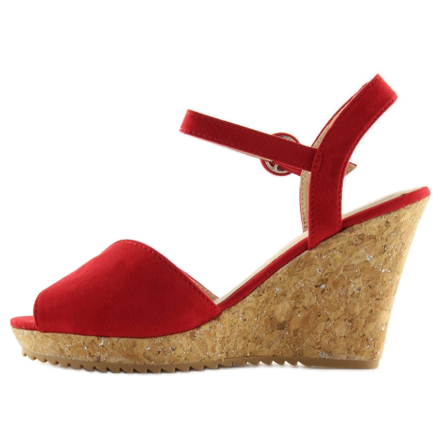Détails: Sandales rouges sur talon compensé en liège 3811