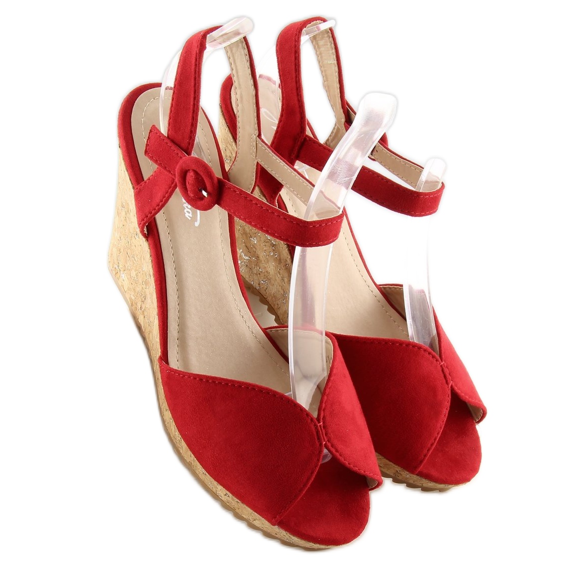Inna marka Sandales rouges sur talon compensé en liège 3811