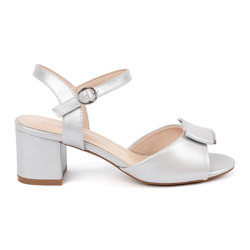 Détails: Sergio Leone Sandales sur le pilier des femmes avec un talon argenté ouvert
