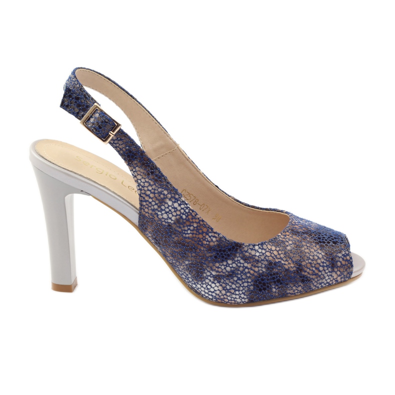 Les sandales Sergio Leone se distinguent par une combinaison unique de couleurs - beige nacré, marron chaud et subtile dentelle bleu marine, ce qui en fait un complément parfait aux styles quotidiens et plus formels. Grâce au talon de 9,5 centimètres, elles ajoutent de l'élégance et allongent la silhouette, tout en assurant la stabilité lors de la marche.