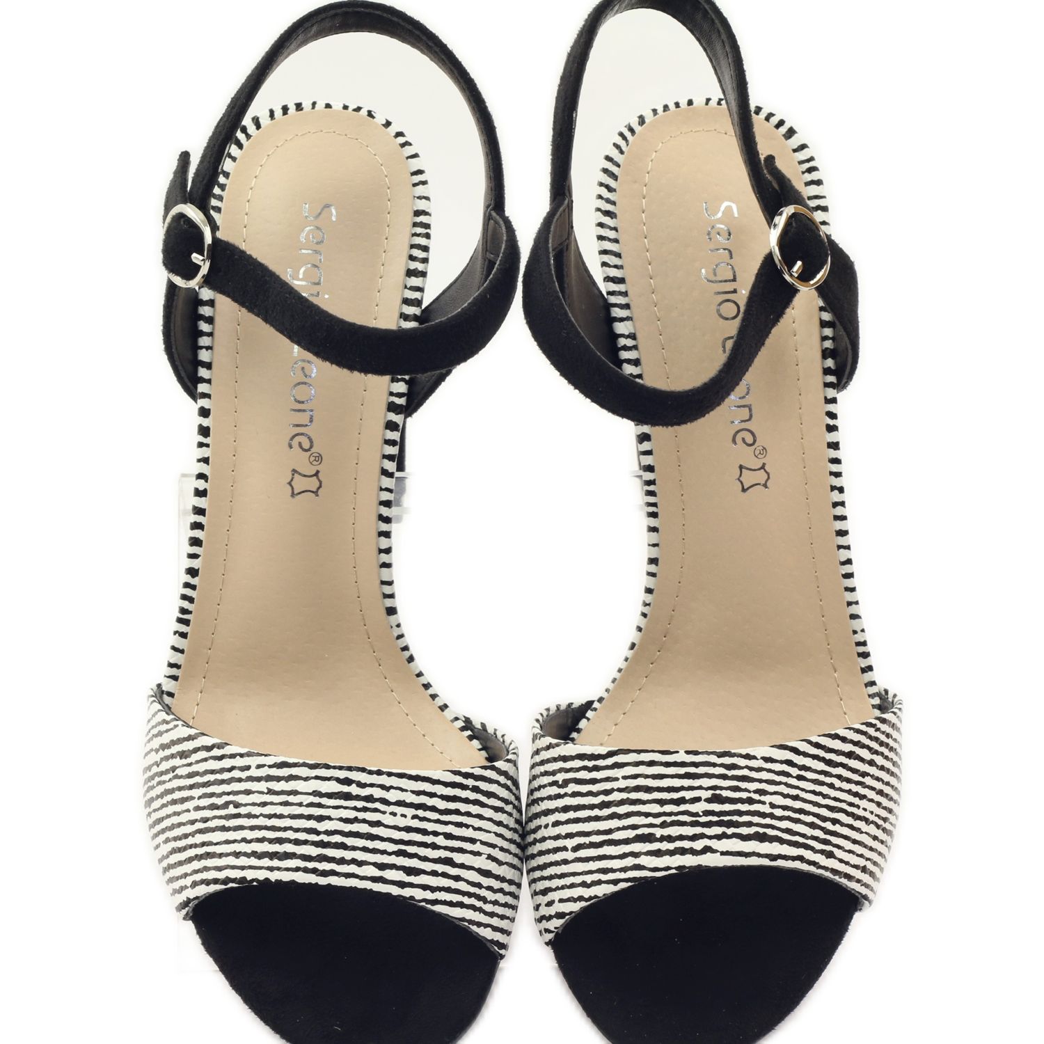 Les sandales à talons hauts à rayures blanches et noires Sergio Leone 820 sont un choix idéal pour les femmes qui apprécient la combinaison de l'élégance et du confort. Ces sandales uniques se distinguent non seulement par leur design à la mode, mais également par leur fabrication soignée en cuir écologique de haute qualité, qui garantit la durabilité du produit.