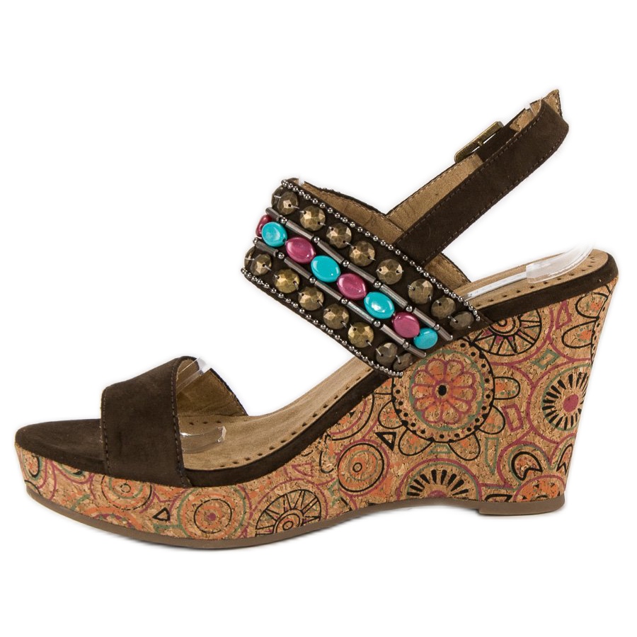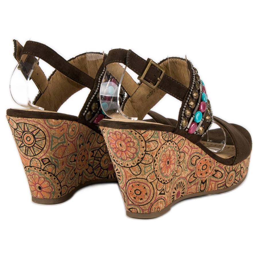 Les sandales Corina sont un choix parfait pour les femmes qui apprécient le style et le confort. Fabriquées en cuir suédé écologique de haute qualité, ces sandales compensées en liège marron s'intégreront parfaitement à votre garde-robe estivale. Leur coupe classique souligne l'élégance et assure en même temps un confort de port.