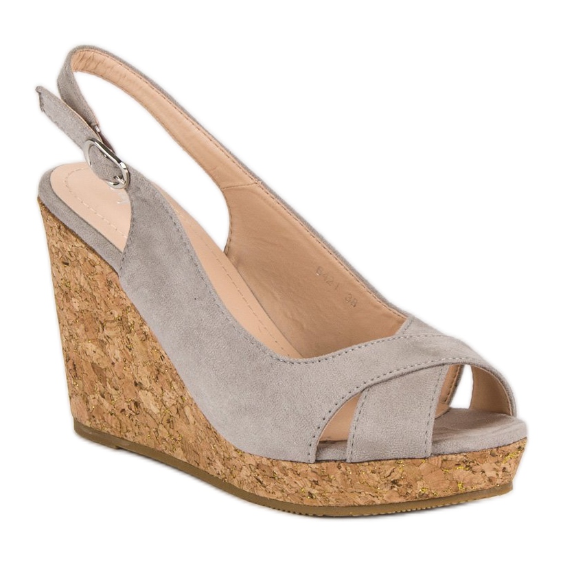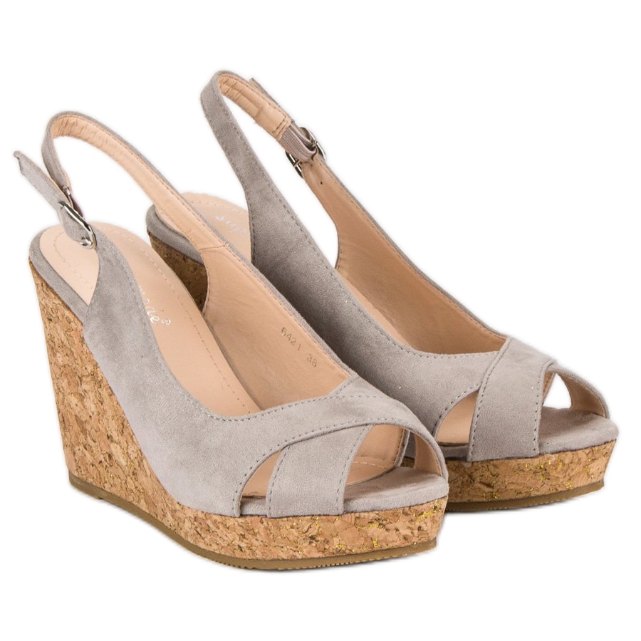Nous vous présentons des sandales avec un talon compensé en liège dans une élégante nuance de gris du célèbre fabricant Super Mode. Ces chaussures élégantes pour femmes sont un choix parfait pour les femmes qui apprécient le confort et un look tendance.