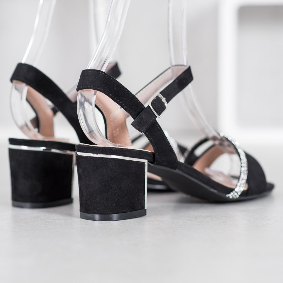 Détails: Anesia Paris Sandales sur un bar avec zircone cubique le noir