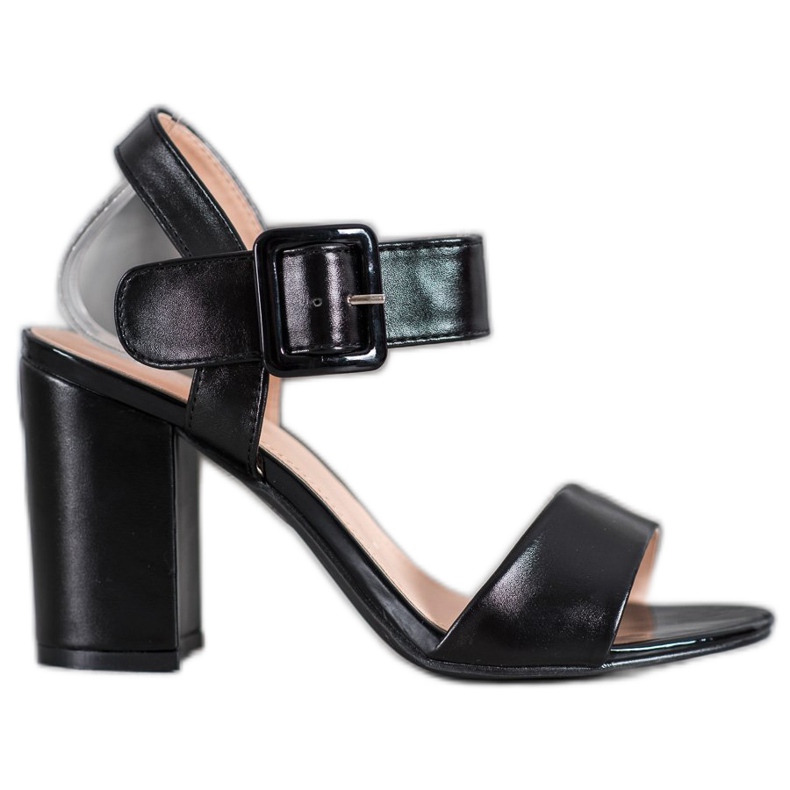 Small Swan Sandales sur une barre avec cuir écologique noir