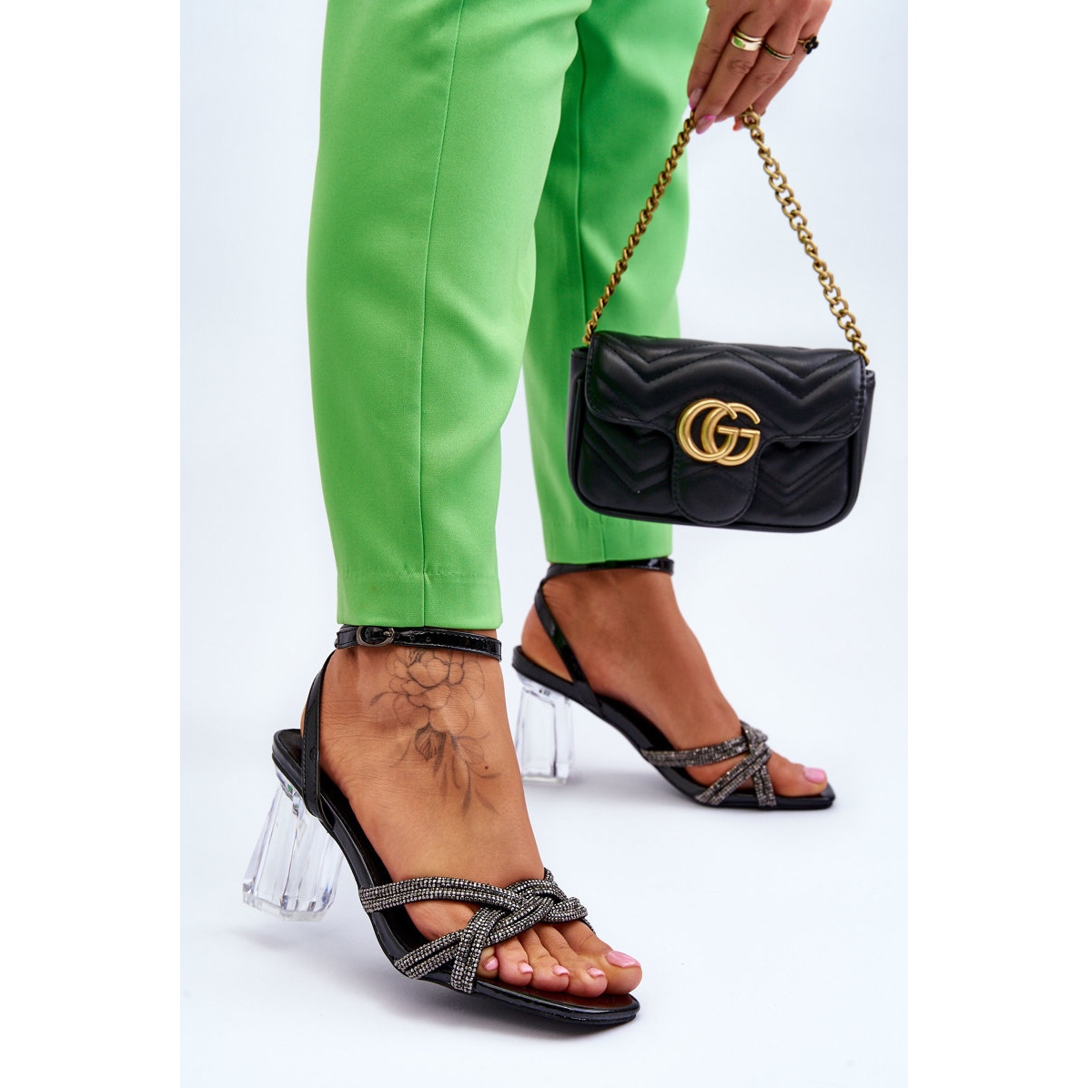 Les sandales S.Barski à talon transparent sont une combinaison de classique et de moderne, qui complétera aussi bien les tenues de soirée élégantes que les ensembles plus décontractés. La couleur noire assure l'universalité et les strass ajoutent un éclat raffiné qui ne passera pas inaperçu.