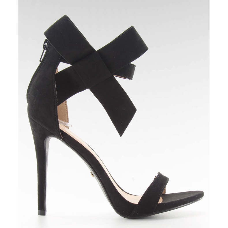 Sandales pour femmes élégantes à talon haut (11 cm), en daim écologique, de couleur noir profond. Le style gladiateur avec un devant ouvert expose magnifiquement le pied et affine la jambe, et le nœud subtil à la cheville ajoute une touche chic et féminine. La fermeture éclair à l'arrière de la tige permet un enfilage facile et rapide.