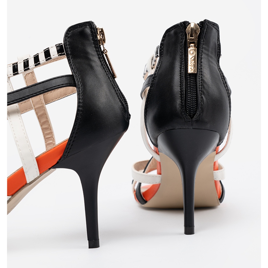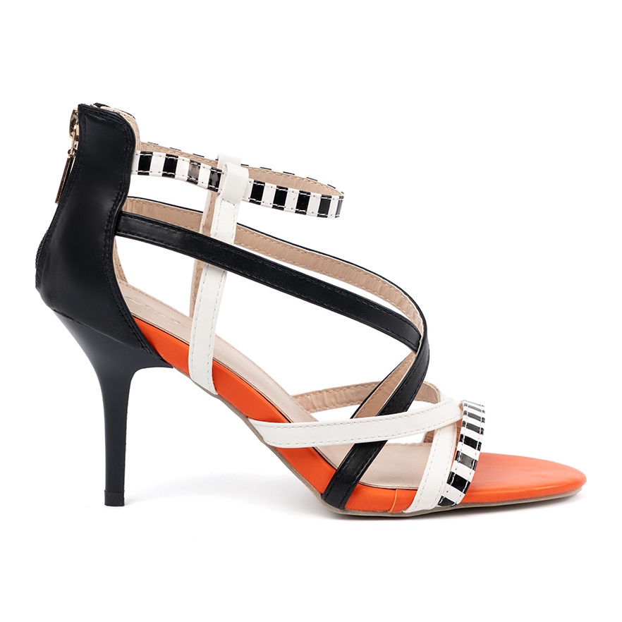 Rencontrez les sandales sur le talon haut Shelvt - le choix parfait pour chaque femme à la mode qui veut souligner son style et son élégance à des occasions spéciales. Ces sandales multicolores se distinguent par un design unique avec des sangles blanches et blanches qui leur donnent du caractère et attirent l'attention.