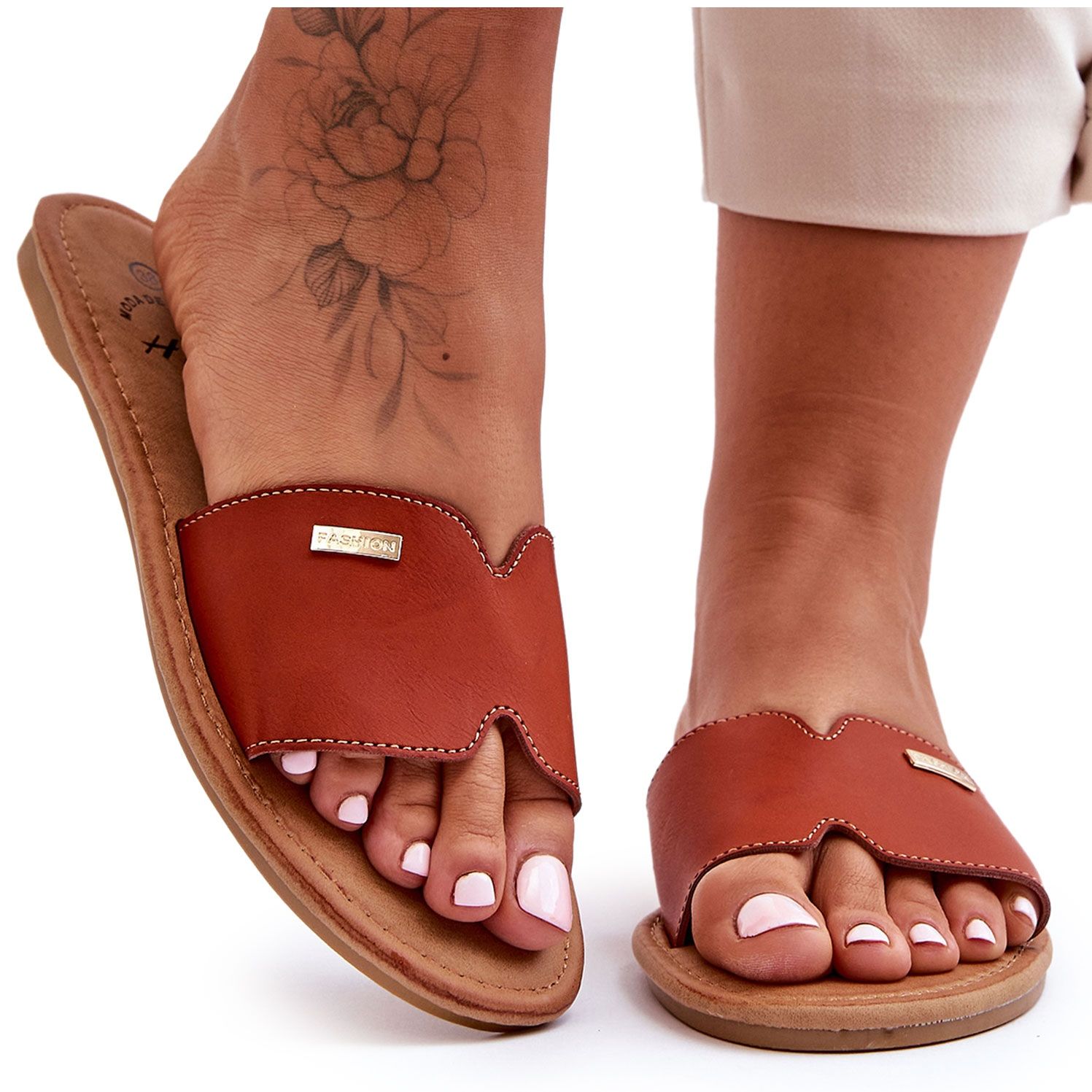Découvrez un confort et un style inégalés avec les sandales plates Coraline pour femme dans une élégante couleur marron. Ces tongs classiques sont fabriquées en cuir écologique de haute qualité, ce qui les rend à la fois durables et respectueuses de l'environnement. La plaque décorative sur le devant ajoute du charme et le talon plat les rend parfaites pour un usage quotidien.