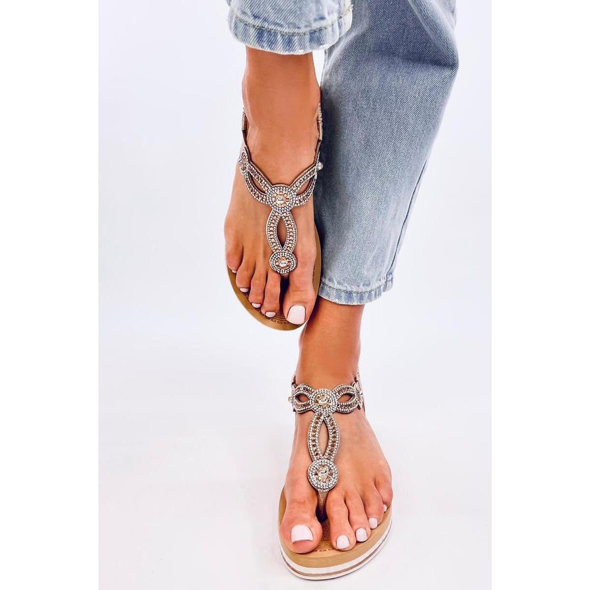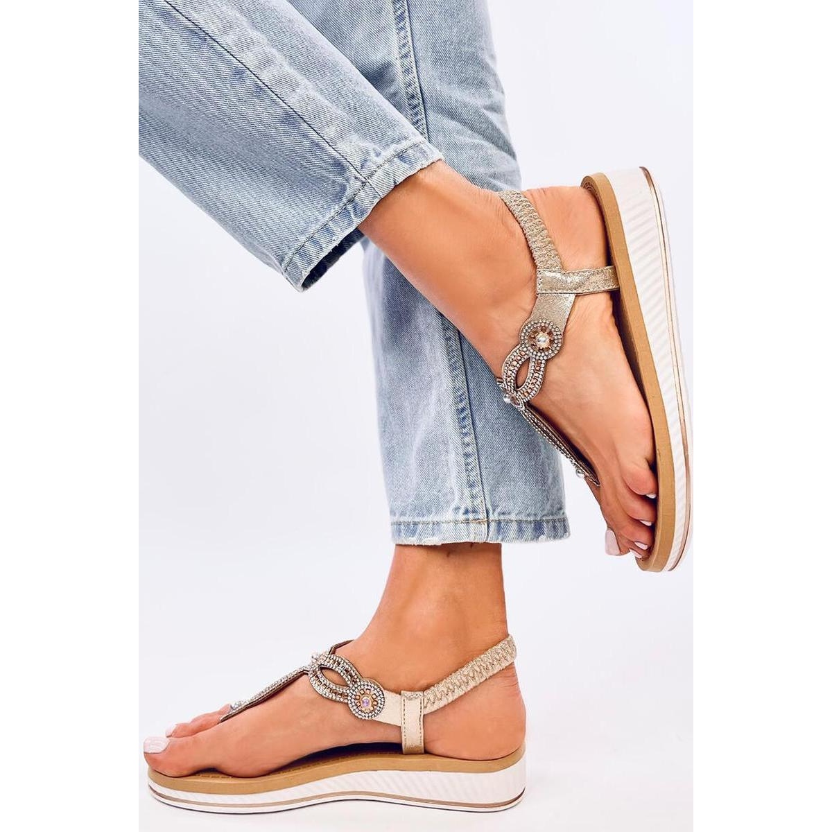Détails: Sandales tongs avec zircons Harani Gold - Inello jaune