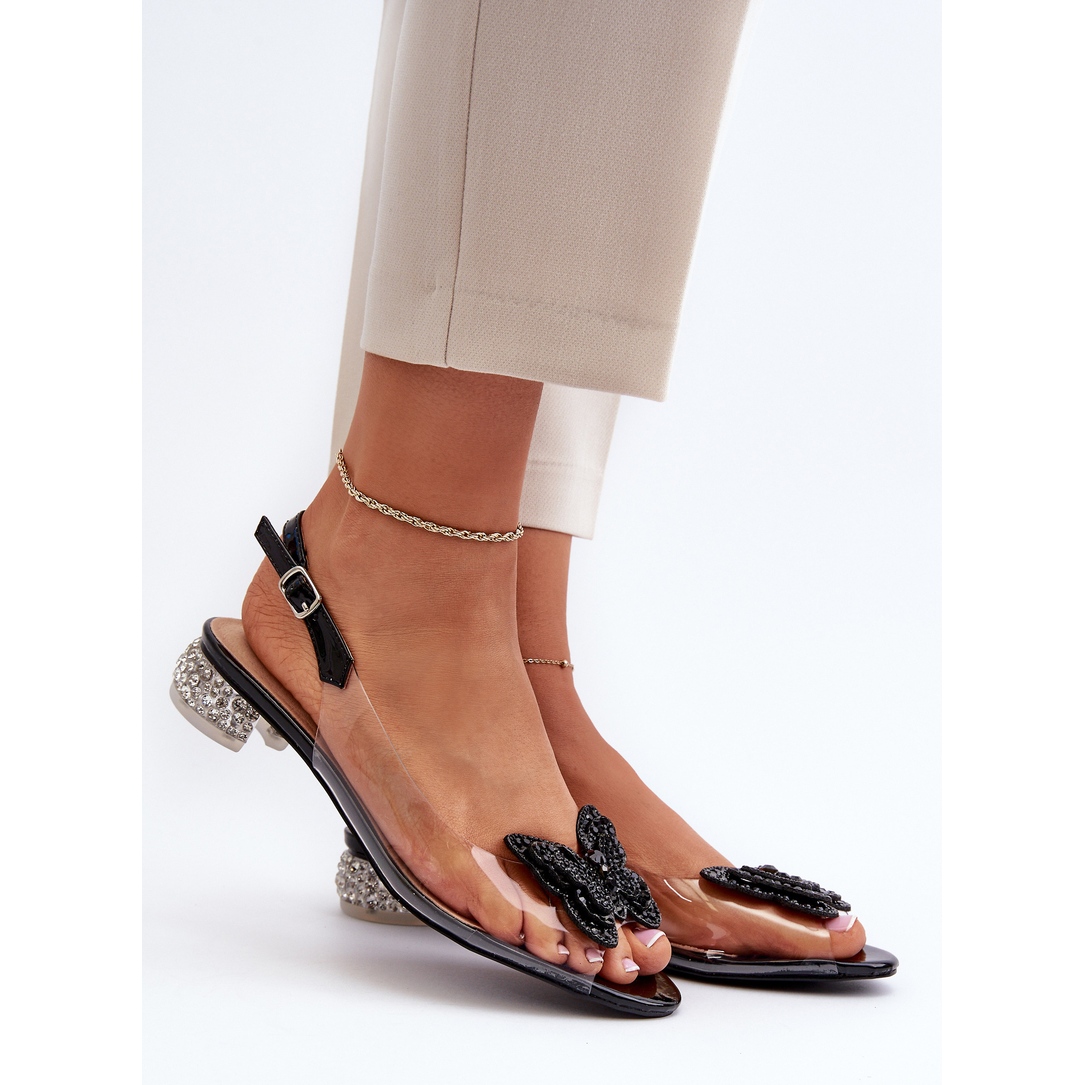 S.Barski S.Barski Sandales Transparentes à Talon Bas Avec Papillon Noir D&A MR38-388 le noir