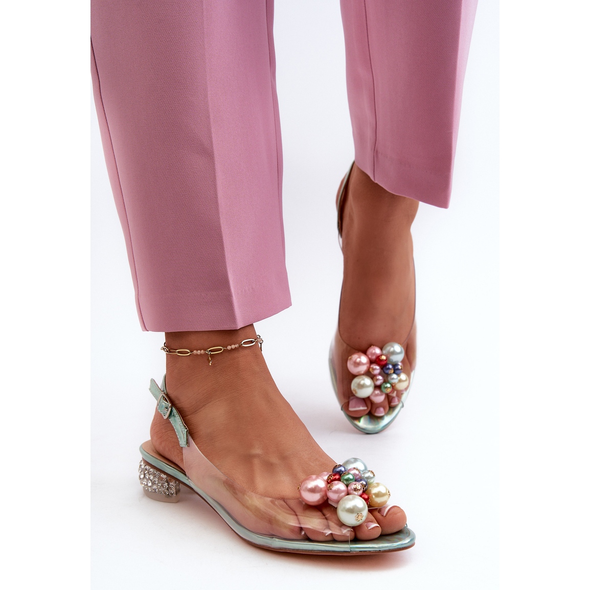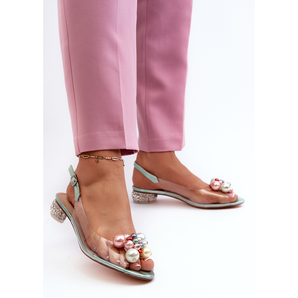 S.Barski S.Barski Sandales transparentes à talons bas avec décoration Vert D&A MR38-368