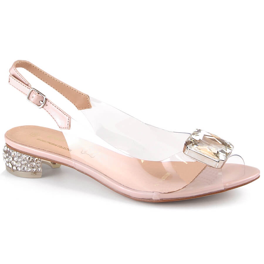 Détails: Sandales transparentes sur un talon plat avec une pierre rose S.Barski MR1037-10