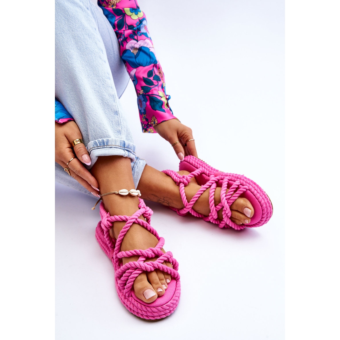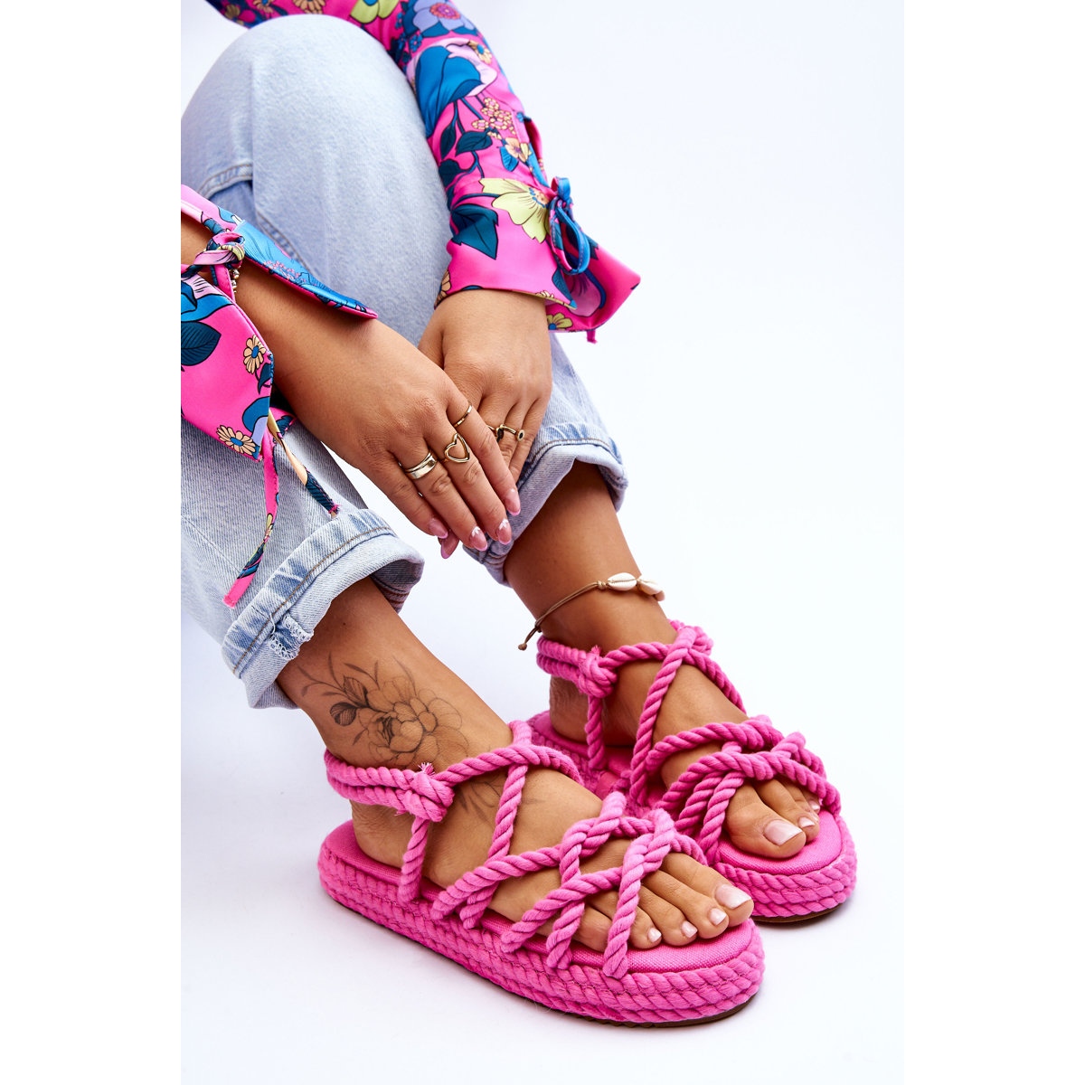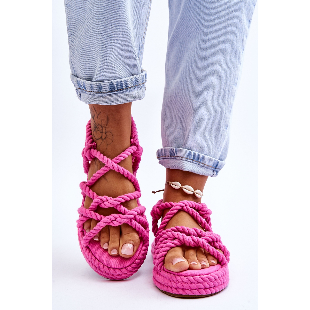 Détails: Sandales tressées à la mode pour femmes Fuchsia Tiffanie rose