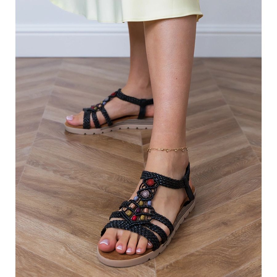 Sandales tressées noires décorées de perles