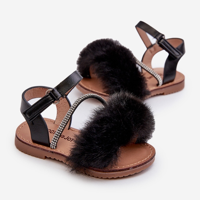 Détails: Sandales Velcro pour Enfants avec Fourrure, Noir Rosavere le noir